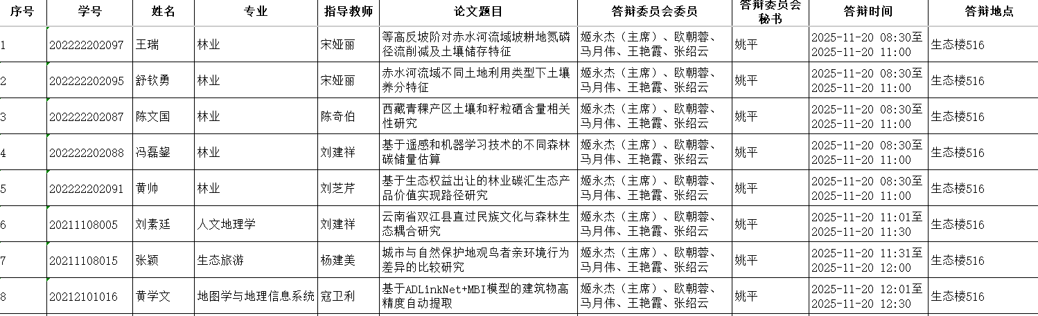 2025年秋水土保持学院硕士研究生学位论文答辩安排信息公开
