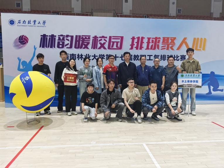 为深入贯彻党的二十大关于建设体育强国的战略部署,积极响应全民健身号召,丰富教职工业余文化生活,增强团队凝聚力,由校工会、妇联联合主办的“第十七届教职工气排球比赛”在学校体育馆顺利举行。本届比赛以“林韵暖校园,排球聚人心”为主题,我院积极组织并参加了本次比赛,水土保持学院代表队凭借出色的团队配合与顽强拼搏的精神,最终荣获本届比赛三等奖。